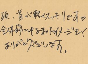 「1週間合計で3時間も眠られていません・・」だった20代男性 より 1回目で効果があらわれ、5回目終了後にいただいたメール